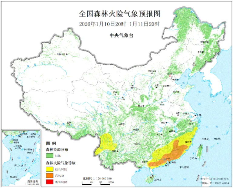 经综合研判,预计2026年1月10日至15日,福建南部、江西东南部、广东东部和南部、广西东南部的部分地区森林火险等级将维持高度危险级别,特发布高森林火险橙色预警,请密切关注火险变化,落实预警响应措施,持续加强火源管控,强化应急准备,有效应对当前严峻的高森林火险形势。